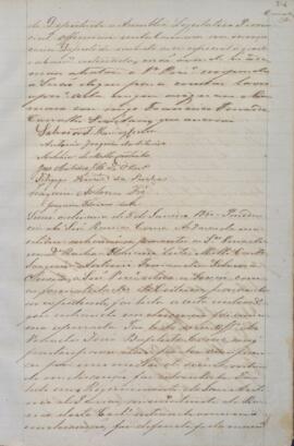 Ata da sessão ordinária de 05 de janeiro de 1860, às 09 horas da manhã e sob presidência de Ramos Correa. Foi lido um ofício do vereador João Baptista Correa em que dizia não poder comparecer à sessão. Foi lido um requerimento de José Antonio de Farias, e outro de Manoel Alves Lobo - escrivão do júri e execuções criminais – em que requeria a Câmara um mandado a favor sobre custas no valor de Rs. 420:981, e adiaram para a sessão ordinária de 06 de janeiro de 1860. Documento lavrado pelo secretário Francisco Ferraz de Carvalho e assinado pelos vereadores Salvador de Ramos Correa, Filippe Xavier da Rocha, Antonio Joaquim da Silveira, José Antonio Gonçalves de Oliveira, Joaquim Antonio Fernandes, Joaquim Floriano Leite e Melchior de Mello Castanho.