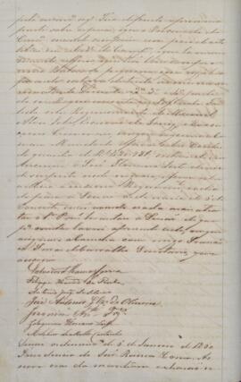 Documento lavrado pelo secretário Francisco Ferraz de Carvalho e assinado pelos vereadores Salvador de Ramos Correa, Melchior de Mello Castanho, José Antonio Gonçalves de Oliveira, Antonio Joaquim da Silveira, Filippe Xavier da Rocha e Joaquim Floriano Leite.