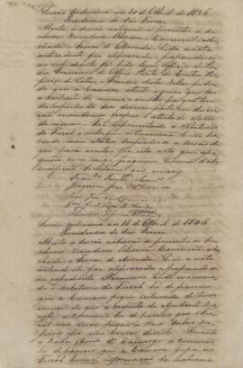 Documento redigido pelo secretário Joaquim Correia de Assunção e assinado por: Francisco Ferraz de Carvalho, Joaquim José de Oliveira, João José da Conceição, João Leite Ferraz de Arruda, e Theodoro Zeferino Machado.