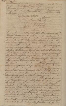 Ata da sessão ordinária do dia 23 de outubro de 1858, sob presidência de Salvador de Ramos Correia. Em sessão o ex procurador José Baldoino Lopes, e seu substituto Pedro Ferraz de Arruda, compareceram e prestaram explicações a respeito de suas contas. Passaram mandado a favor dos empregados, e discutiram sobre um abaixo assinado a respeito da demarcação de limites de propriedades e sobre uma taxa anual que cada proprietário de escravos deveriam pagar.