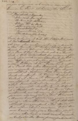 Dcumento redigido pelo secretario Francisco Ferraz de Carvalho e assinado por: João Morato de Carvalho, Salvador de Ramos Correia, Antonio Joaquim da Silveira, Antonio Narciso Coelho, José Antonio Gonçalves de Oliveira, Felipe Xavier da Rocha, Manoel Barbosa Pires, e Joaquim Floriano Leite.