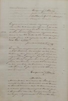 Documento (assentada), redigido pelo escrivão José Manoel da França, que informa os presentes Sala da Câmara Municipal, para a inquirição das testemunhas. Sendo presentes, o escrivão, promotor público (Antônio José de Moraes), o Juiz (João de Cerqueira Mendes), o réu (Joaquim Grande) e o curador (Bento Barreto do Amaral Gurgel)