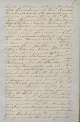 Ata da sessão ordinária do dia 10 de abril de 1860, às 09 horas da manhã, sob presidência de Ramos Correa. Foram nomeadas as comissões, Floriano Leite indicou que se oficiasse ao procurador para apresentar com urgência a relação dos multados e discutiram sobre. Leram e aprovaram a ata antecedente, como também a parte do vereador Joaquim Antonio Fernandes, que foi aprovado. Foi lido um ofício do Governo Provincial no qual ordena a Câmara a indicar um cidadão para ser juiz comissário municipal. Foi lida uma circular do Governo Provincial na qual pedia informações sobre terrenos, e foi deliberado que fossem vistos os registros dos oficiais, pois já havia sido respondida uma outra circular sobre o mesmo assunto. Leram circulares do Governo Provincial, uma sobre a nomeação de Manoel de Moraes Barros para o cargo de delegado de polícia de Piracicaba e outra sobre as providências tomadas acerca da ponte do ribeirão do Tolledo em Santa Bárbara. Foram entregues pelo presidente, a coleção das leis gerais remetidas pelo juiz de direito desta comarca e mandou arquivar. Oliveira indicou que as telhas do rancho do Sapezeiro estavam se quebrando, foi deliberado que tirasse todas e as contassem. Floriano Leite evidenciou a construção da nova ponte sobre o rio Piracicaba e assim nomearam para a comissão de obras públicas o doutor Rocha.