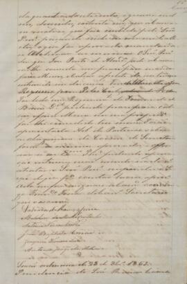 Ata da sessão ordinária do dia 28 de outubro de 1859, às 09 horas da manhã, sob presidência de Ramos Correa. Foi lida a ata antecedente e aprovada. O presidente falou sobre o pedido da Câmara ao presidente da província acerca da lei provincial do ano de 1859, sobre o orçamento municipal e prestação de contas. Foi lido um ofício do presidente a respeito do pagamento da primeira prestação ao contratante João Morato de Carvalho referente a ponte sobre o rio Piracicaba e um requerimento do reverendo João José de Almeida em que pedia um terreno para o “Lazareto” (local onde abrigava pessoas portadoras de hanseníase). O presidente evidenciou a ausência do vereador Rocha e entrando em discussão, ele não foi multado. Documento redigido pelo secretário Francisco Ferraz de Carvalho e assinada pelos vereadores Salvador Ramos Correa, Melchior de Mello Castanho, Antonio Joaquim da Silveira, José Antonio Gonçalves de Oliveira, Antonio Narciso Coelho, João Baptista Correa e Joaquim Floriano Leite.