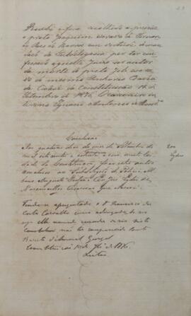 Consta despacho do carcereiro interino, Ignácio Antônio de Almeida, no qual informa que foi recolhido a prisão o réu Joaquim, em virtude de ter confessado ser o autor da morte de Job.