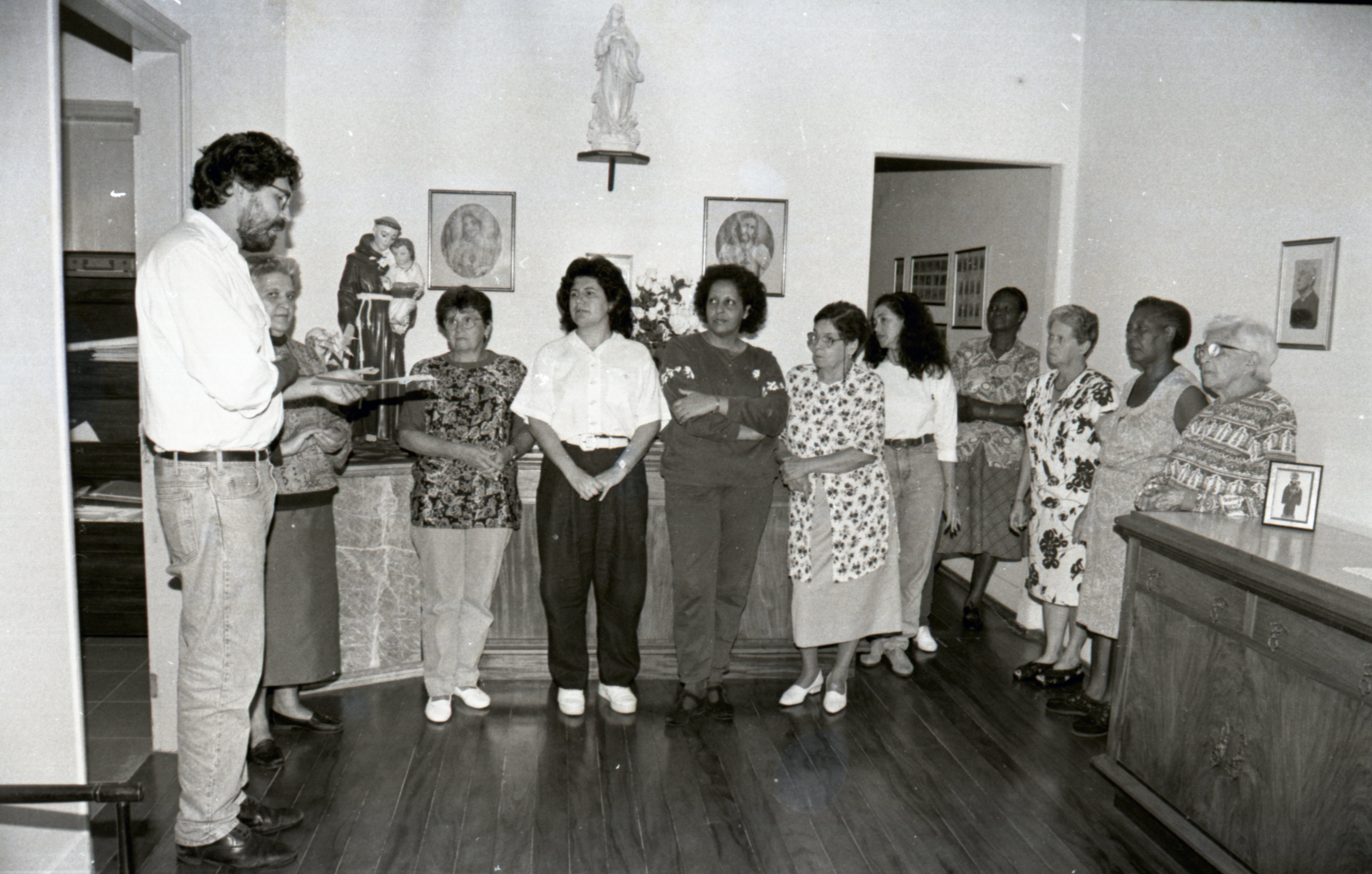 Iconografia que registra a entrega da Moção de Aplausos nº 358/1995, à Pia União de Santo Antônio pela comemoração do Jubileu de Ouro. A entrega da moção contou com a presença do vereador José Otávio Machado Menten, autor da propositura.