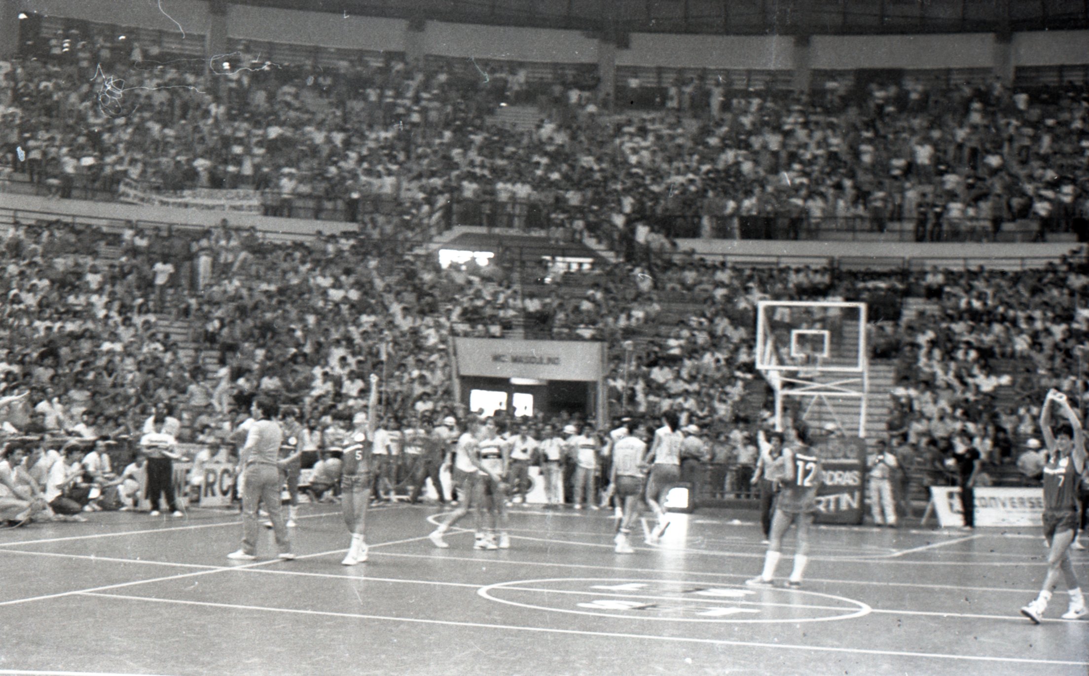 Fotografia que registra a disputa entre a Unimep (Piracicaba) e a Minercal (Sorocaba), na final do Campeonato Paulista Estadual de Basquete Feminino da Divisão Especial, realizada em 26 de janeiro de 1986, no ginásio do Ibirapuera (SP).