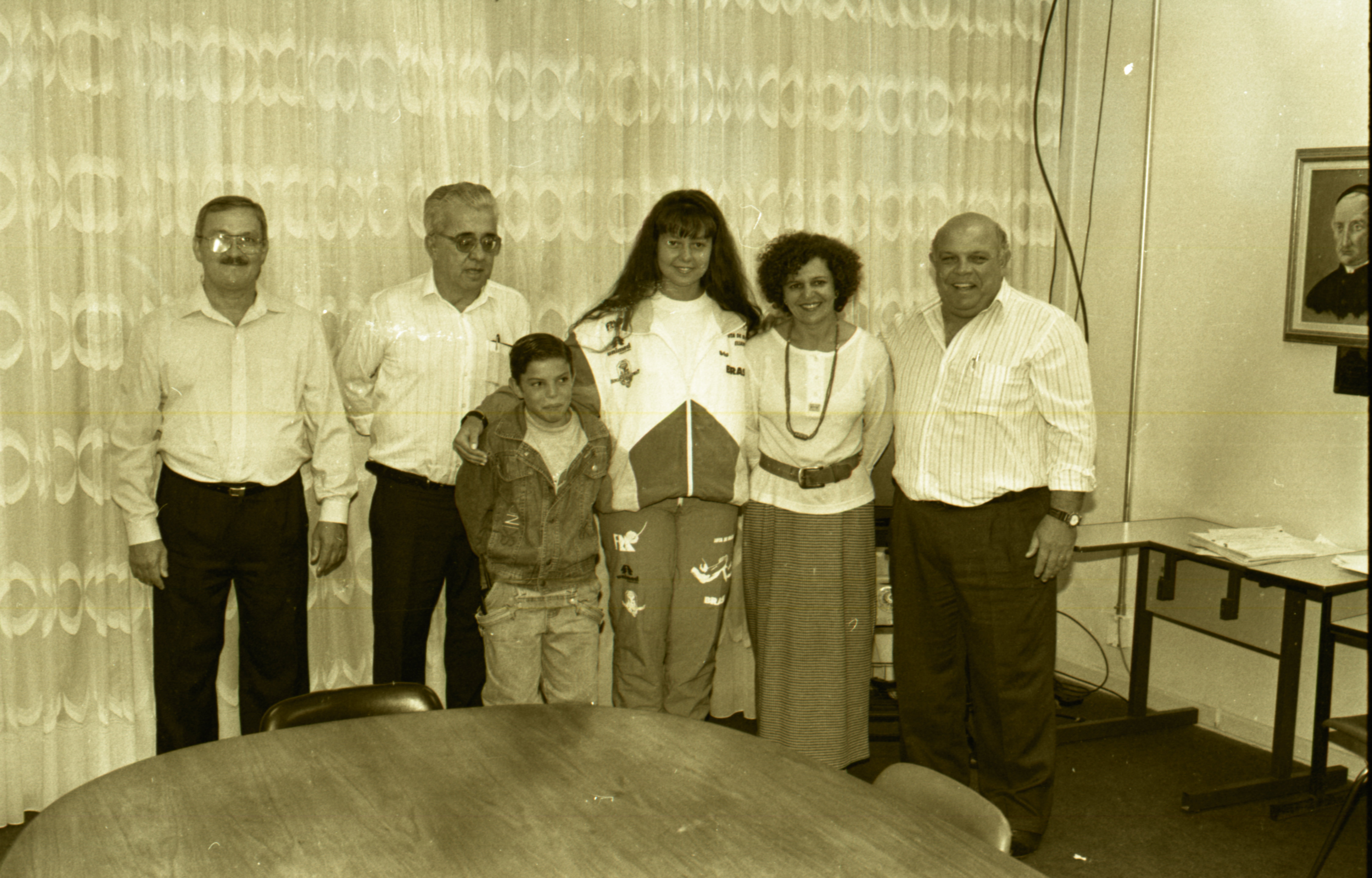 Iconografia que registra a entrega da Moção de Aplausos nº 266/1996, à atleta Eliane Aparecida Fischer pela conquista do sexto lugar no campeonato mundial de luta de braço. A entrega foi feita na então sala de reuniões dos vereadores da Câmara Municipal de Piracicaba, e contou com a presença do vereador Laerte Zitelli (autor da propositura) e de outros membros da edilidade. Na imagem tem-se a vereadora Raimunda de Almeida (Rai de Almeida) e o vereador Egídio Mauro.