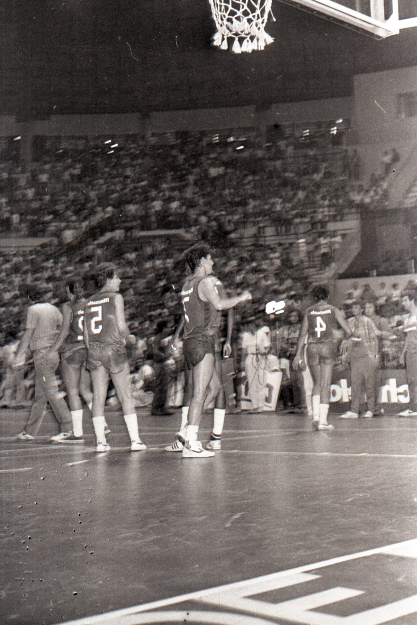 Fotografia que registra a disputa entre a Unimep (Piracicaba) e a Minercal (Sorocaba), na final do Campeonato Paulista Estadual de Basquete Feminino da Divisão Especial, realizada em 26 de janeiro de 1986, no ginásio do Ibirapuera (SP).
