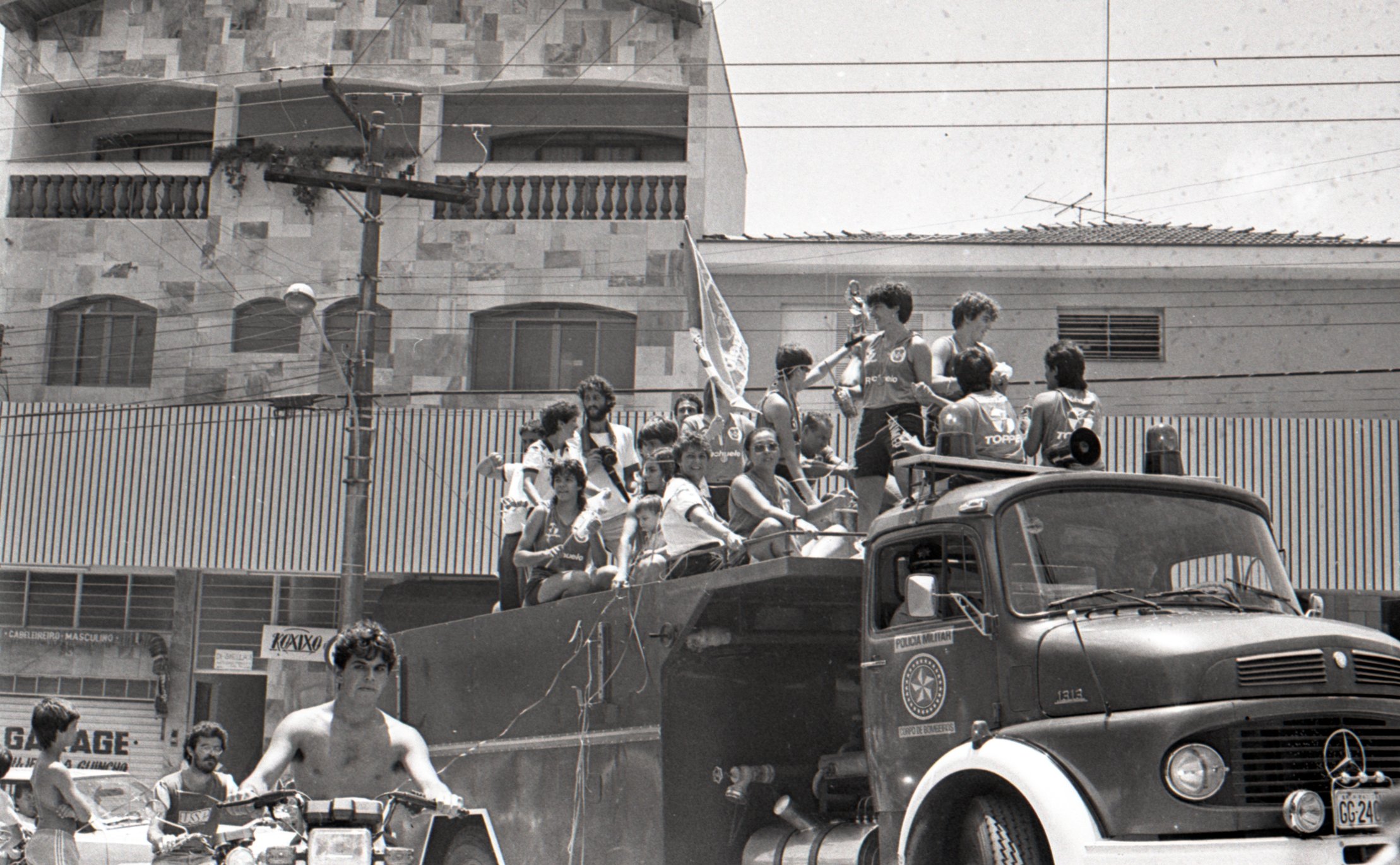 Na imagem, a delegação da Associação Desportiva da Unimep desfila pelas ruas de Piracicaba em um carro (caminhão) aberto do Corpo de Bombeiros. Identificam-se na foto: Adalberto Maluf, Heleninha, Pauléo (fotógrafo – com a câmera fotográfico no pescoço), Ana Fofão, Vânia Teixeira, Maria Helena, Suka (sentada, de óculo), Markão, Anne (encoberta pela bandeira), Vânia Hernandes (segurando o troféu), Marreco, Paula e Branca. Sentadas na frente, de costas, provavelmente estão Nádia e Betinha.