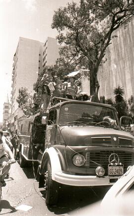 Na imagem, a delegação da Associação Desportiva da Unimep desfila pelas ruas de Piracicaba – mais precisamente na Rua Boa Morte, em um carro (caminhão) aberto do Corpo de Bombeiros. Identificam-se na fotografia: Ana Fofão (ao fundo), Vânia Hernandes (à esquerda, de óculos), Suka (ao centro, de óculos) e Betinha.