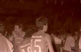 Fotografia que registra a disputa entre a Unimep (Piracicaba) e a Minercal (Sorocaba), na final do Campeonato Paulista Estadual de Basquete Feminino da Divisão Especial, realizada em 26 de janeiro de 1986, no ginásio do Ibirapuera (SP).