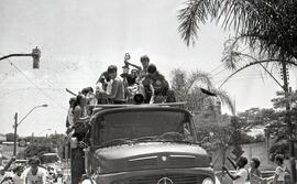 Na imagem, a delegação da Associação Desportiva da Unimep desfila pelas ruas de Piracicaba em um carro (caminhão) aberto do Corpo de Bombeiros. Identificam-se na fotografia: Heleninha, Maria Helena, Suka, Pauléo, Vânia Hernandes, Mugão, Branca e Nádia