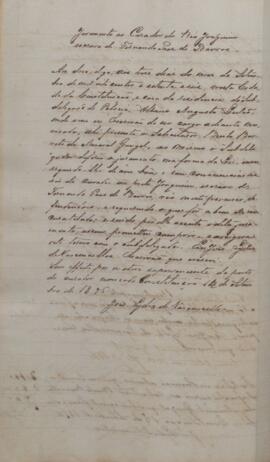 Juramento do curador do réu Joaquim, Bento Barreto do Amaral Gurgel. Consta que tal juramento deu-se no dia 13 de setembro de 1876, na casa do subdelegado de polícia, Albano Augusto Leitão, sendo escrito pelo escrivão José Lydio de Vasconcellos.