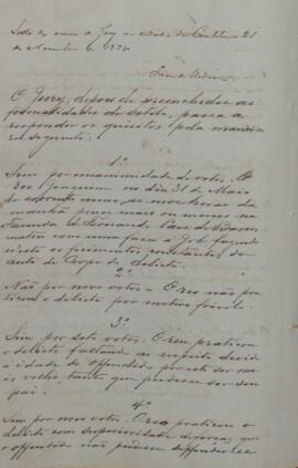 O júri, por unanimidade de votos, respondeu que o réu Joaquim havia matado Job e que ele era um escravizado de Fernando Paes de Barros. Mas, por 9 votos, definiu que ele não havia cometido o delito por motivo frívolo. Sem unanimidade, todas as outras perguntas foram respondidas como “sim”: Que havia superioridade de força e armas e que havia circunstancia atenuantes em favor do réu – as dos §§1º e 6º.