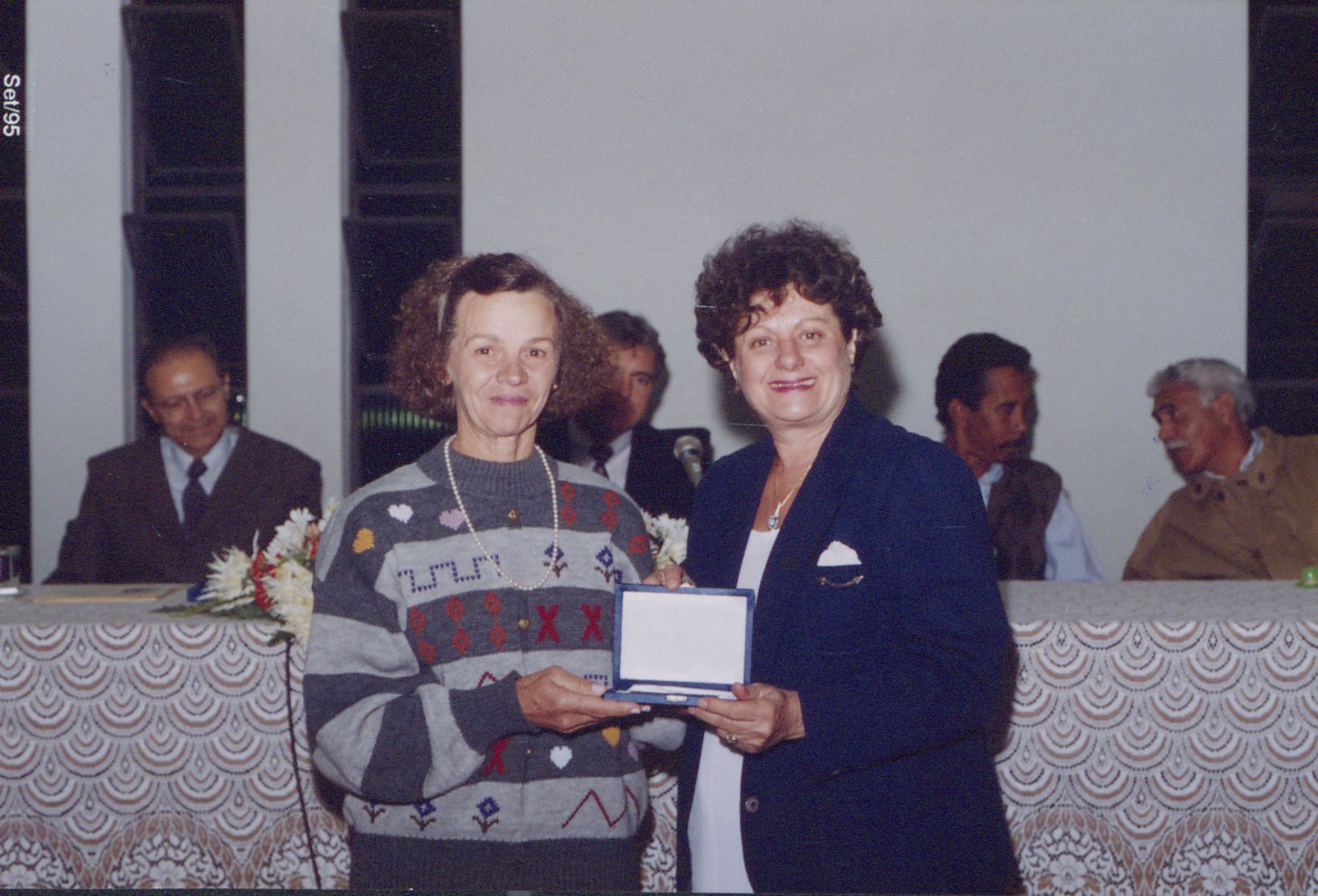 Entrega de cartão de prata alusivo a Francisco Degáspari, teatrólogo do bairro de Santa Olímpia, representado por sua filha. Homenagem entregue pela vereadora Esther Rocha.